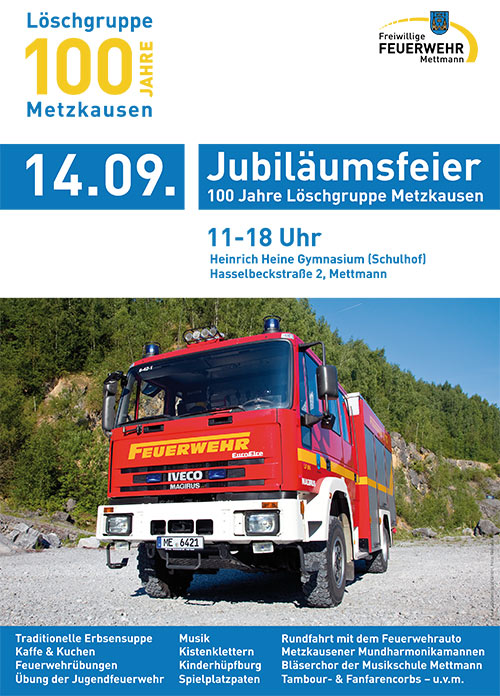 | 1988 | 75-jähriges Jubiläum des Löschzuges Metzkausen in der Aula des Heinrich-Heine-Gymnasiums |